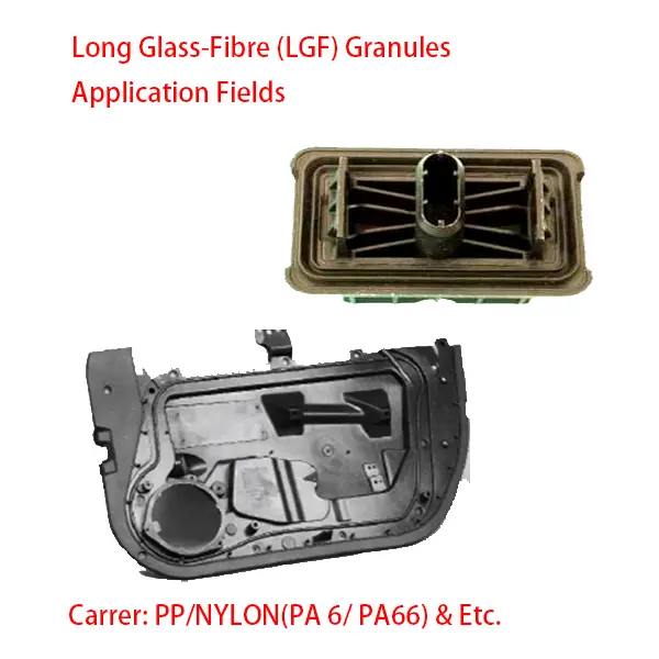 The GFRP granules can make different kinds of special products, such as car pafts, washing machine parts, small kitchen electrical appliances and Etc..